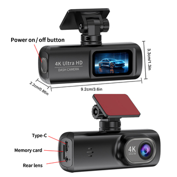 صندوق لوحة القيادة مسجل 4K كاميرا مزدوجة أمامية واي فاي بنظام تحديد المواقع للرؤية الليلية بزاوية واسعة 24 ساعة وضع وقوف السيارات IPS